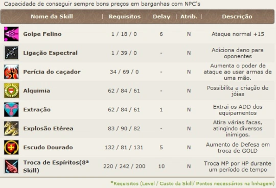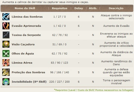 - Para adquirir a oitava skill é necessário ter todas as demais skills da linhagem.